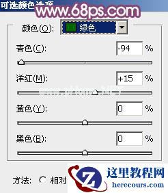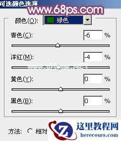 1、打开素材图片,创建可选颜色调整图层,对黄、绿、青进行调整,参数设置如图1 - 3,效果如图4。这一步给图片增加橙红色。