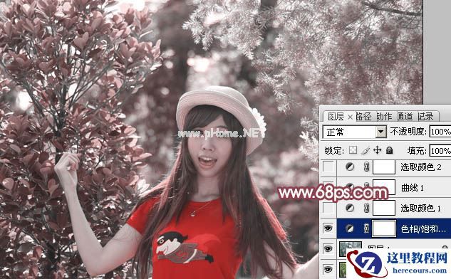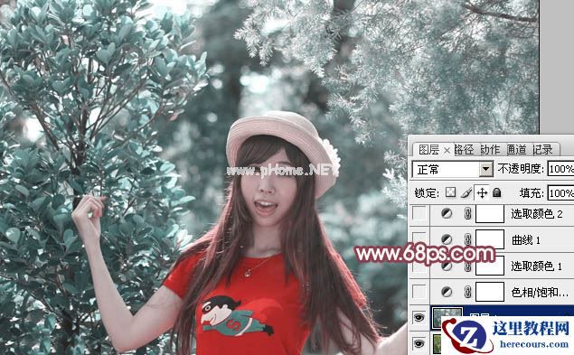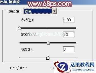 2、创建色相/饱和度调整图层,对青色进行调整,参数及效果如下图。这一步把背景中的青色转为红色。