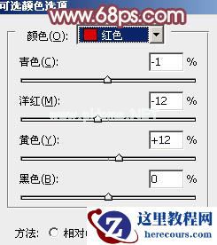 3、创建可选颜色调整图层,对红,黑进行调整,参数设置如图4,5,效果如图6。这样微调图片中的红色及暗部颜色。