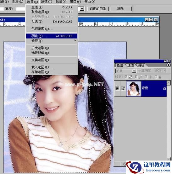 1、先用钢笔或套索工具勾出人物的主体部分,做的时候一定要注意,蚂蚁线不要太到边缘,更不能外出,否则扣出来的效果是不理想的。