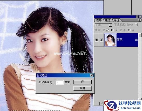 3、羽化值根据图像的面积的大小和所选范围的大小而设定,我这里设定为1。