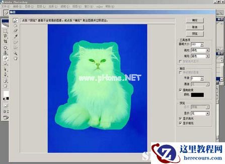 2、选择副本2,滤镜/抽出,设置参数如图,注意设置强制前景色为白色,要勾选强制前景选项;