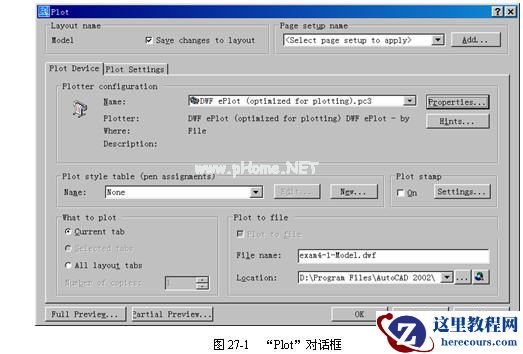 调用plot命令后,AutoCAD弹出“Plot(打印)”对话框,如图27-1所示。