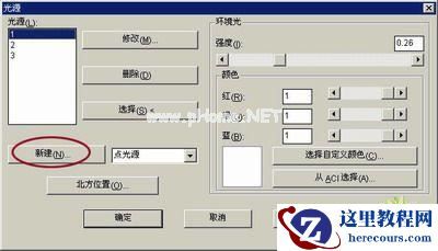 建立三个点光源,其中1号点光源是主光源,有阴影,无衰减;2号是辅助光,没有阴影,也没有衰减;3号是最弱的辅助光,没有阴影,有线性衰减。点光源的位置很重要,要根据自己的想法灵活调整
