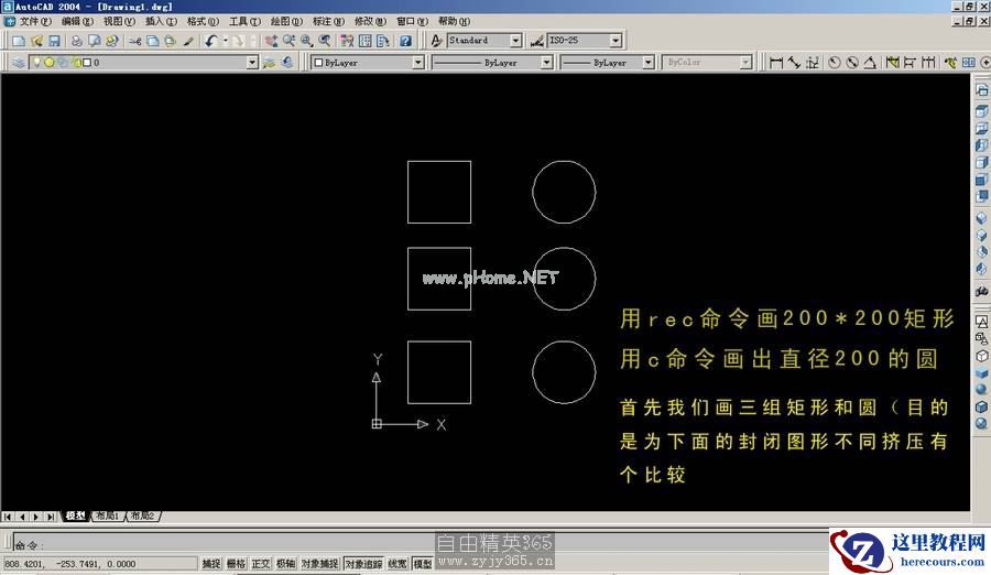 绘制三个矩形和圆,可用于比较ext命令后三种不同结果