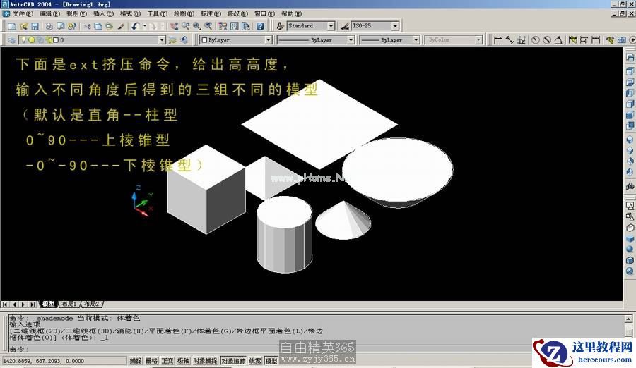 03  这个是ext标准(默认90)挤压命令后生成的模型(圆柱和方体)