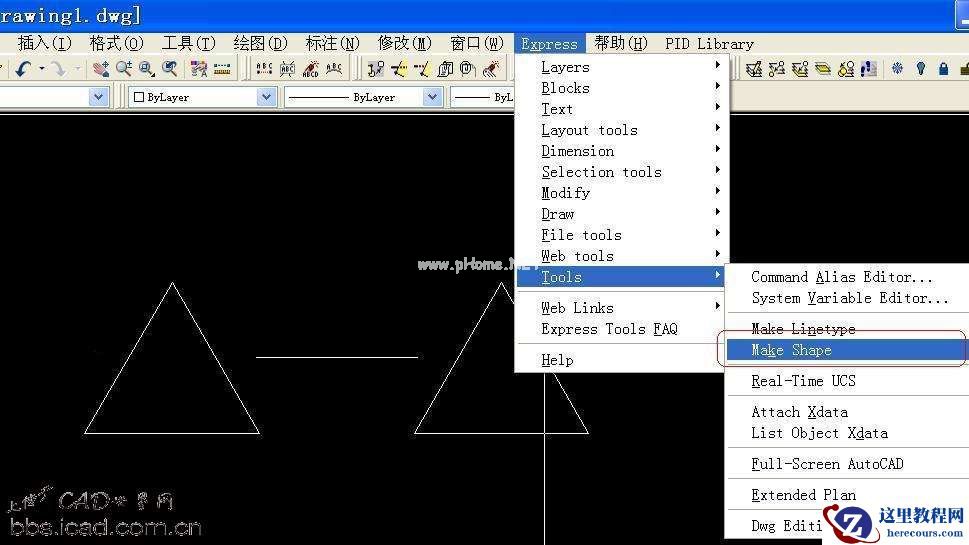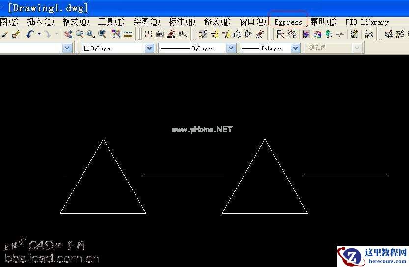 安装Express Tools工具,安装后启动CAD在工具栏上出现"Express"菜单,若没有出现可以输入Expressmenu调出。