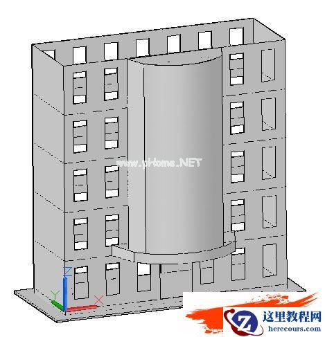 本例为AutoCAD 2011新功能三维建模实例教程,在教程中我们将学习运用曲面命令创建楼房,在以往的版本中以曲面创建的房屋模型不能再编辑,在2011版本中新增了曲面的拉伸、扫掠、修剪、修补、延伸、过渡等等,它填补了曲面编辑之空白,下面就一个楼房的创建为例,谈谈用曲面创建和修改模型的方法~~