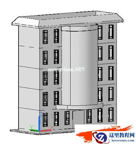 现在,来分析一下,这楼房层高相同,如果要出图,其平面有三:底层平面、标准层平面和屋顶平面。现在的2011版,用曲面来创建这幢楼房的外壳模型,再修改、编辑为实体,不仅十分方便,而且大大减少模型文件的尺寸,有利于分面附材质渲染。