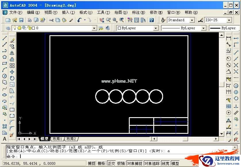 这道题的关键是掌握参照缩放的知识,完全不需要事先确定这些圆的直径,即先不管实际尺寸,待画完后再进行调整,这是一种常用的作图技巧。