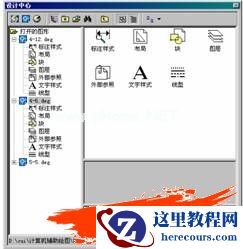 AutoCAD设计中心是AutoCAD提供的一个直观、高效并与Windows资源管理器相类似的工具。利用此设计中心,用户不仅可以浏览、查找、预览和管理AutoCAD图形、光栅图像等不同的资源,而且还可以通过简单的拖放操作,将位于本地计算机、局域网或国际互连网上的块、图层、文字样式、标注样式等插入到当前图形。如果打开多个图形文件,在各文件之间也可以通过简单的拖放操作实现图形的插入,从而使已有资源得到再利用和共享,提高了图形管理和图形设计的效率。