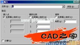 利用该对话框中确定插入点、插入比例、旋转角度后,单击“确定”按钮,即可实现插入。