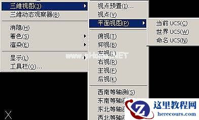 是指用户在三维空间中观察三维图形的位置,将观察者置于一个位置上观察图形,就好像从空中的一个指定点向原点( 0 、 0 、 0 )方向观察。三维视图子菜单为我们观察图形提供了十个特殊视点。见下图