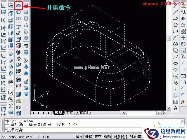 9、移动到位后,做并集处理,操作方法很简单,点击“并集”按钮后,选中要并集的实体,回车确认即可。注意:不先做并集处理,那后面的圆角,在俩实体的结合部的圆角,是不会往外圆角的。