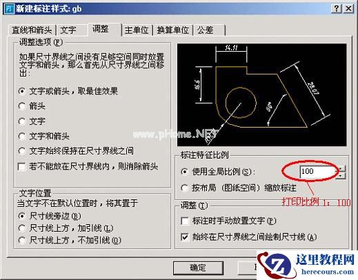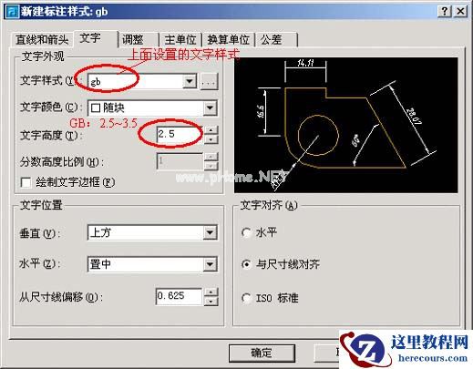 14,OK,符合国标的尺寸标主样式设置完毕,将gb样式置为当前样式即大功告成。