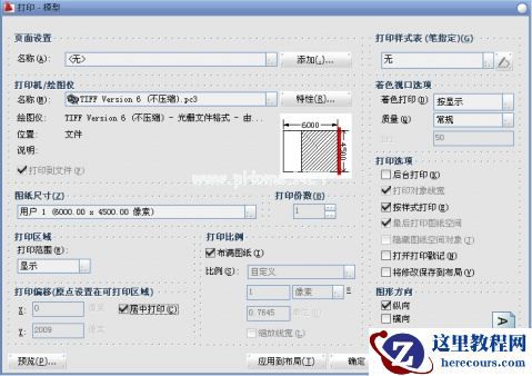 打印机绘图仪 位你刚才建立的那个 tiff6名称的打印机,