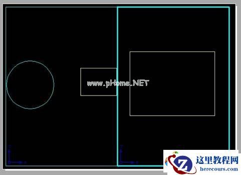 切换到布局空间,操作菜单“视图”——“视口”——“一个视口”,键入“2”并回车,再键入“V”并回车,再键入“F”并回车,布局空间创建了两个视口,每个视口内都显示全部图形——一个圆和一个矩形。