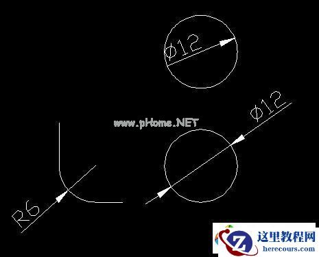 很显然,下面这种半径与直径的标注样式比较符合我国的标注习惯。下面我来介绍一下如何来实现这种半径与直径的标注样式。