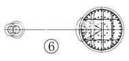 第十九步,操作三次“三维阵列”,分别将圆柱体形成每圈36个、24个和12个,阵列的中心点为0,0,0,旋转轴上的第二点为0,0,10。如图6。
