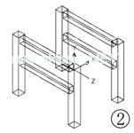 第九步,操作菜单“修改”→“三维操作”→“三维镜像”,命令行窗口提示“选择对象:”,点选上一步形成的两条横撑接着右击鼠标;命令行窗口接着提示“指定镜像平面 (三点) 的第一个点或[对象(O)/最近的(L)/Z 轴(Z)/视图(V)/XY 平面(XY)/YZ 平面(YZ)/ZX 平面(ZX)/三点(3)] <三点>:”,键入“yz”并回车;命令行窗口又提示“指定 YZ 平面上的点:”,键入“100,0,0”并回车;命令行窗口又提示“是否删除源对象?[是(Y)/否(N)] <否>:”,直接回车,另一边的两条横撑也形成了,见图2。