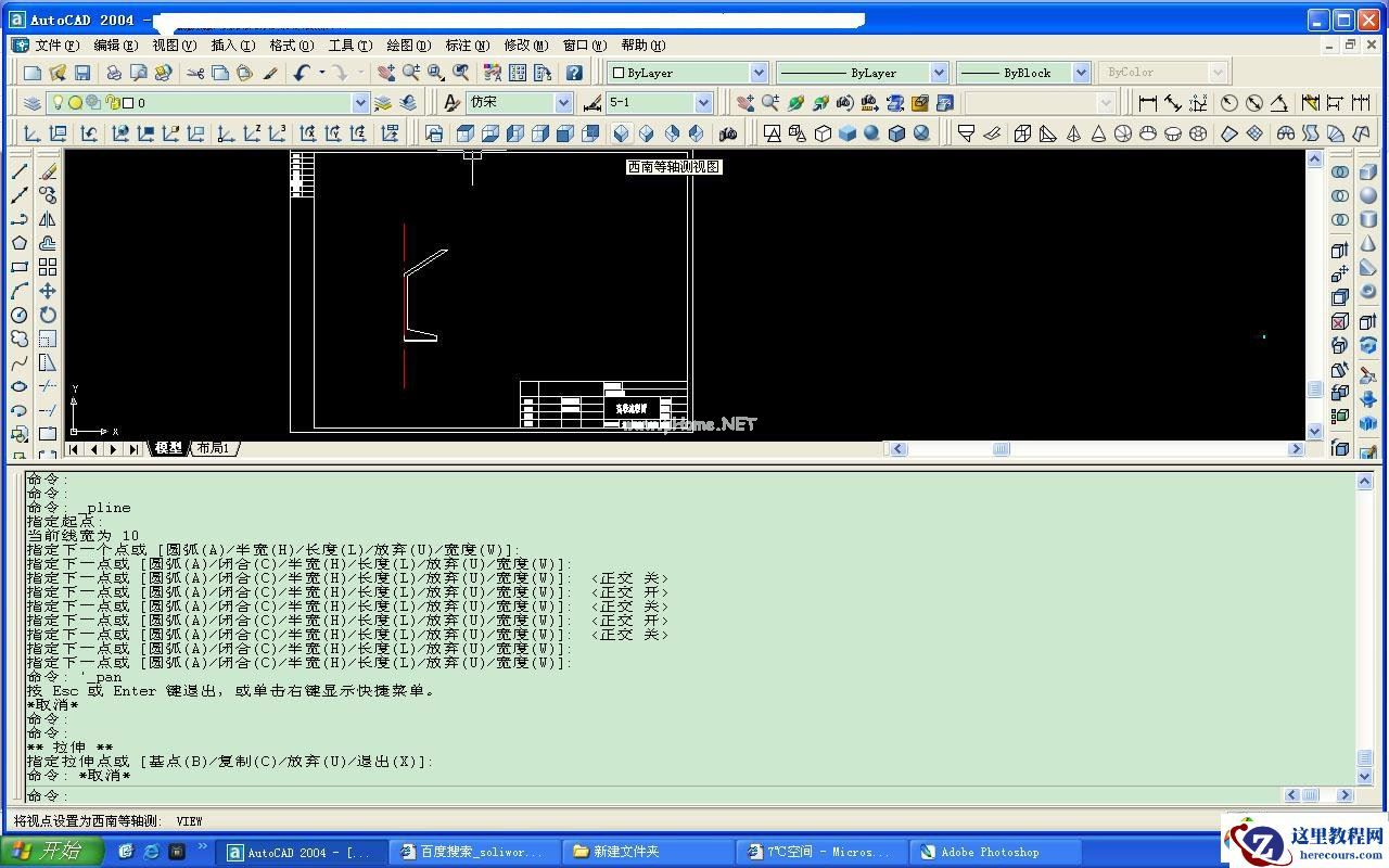 3.执行“视图》》三维视图》》西南等轴测”2维界面转化为3维。