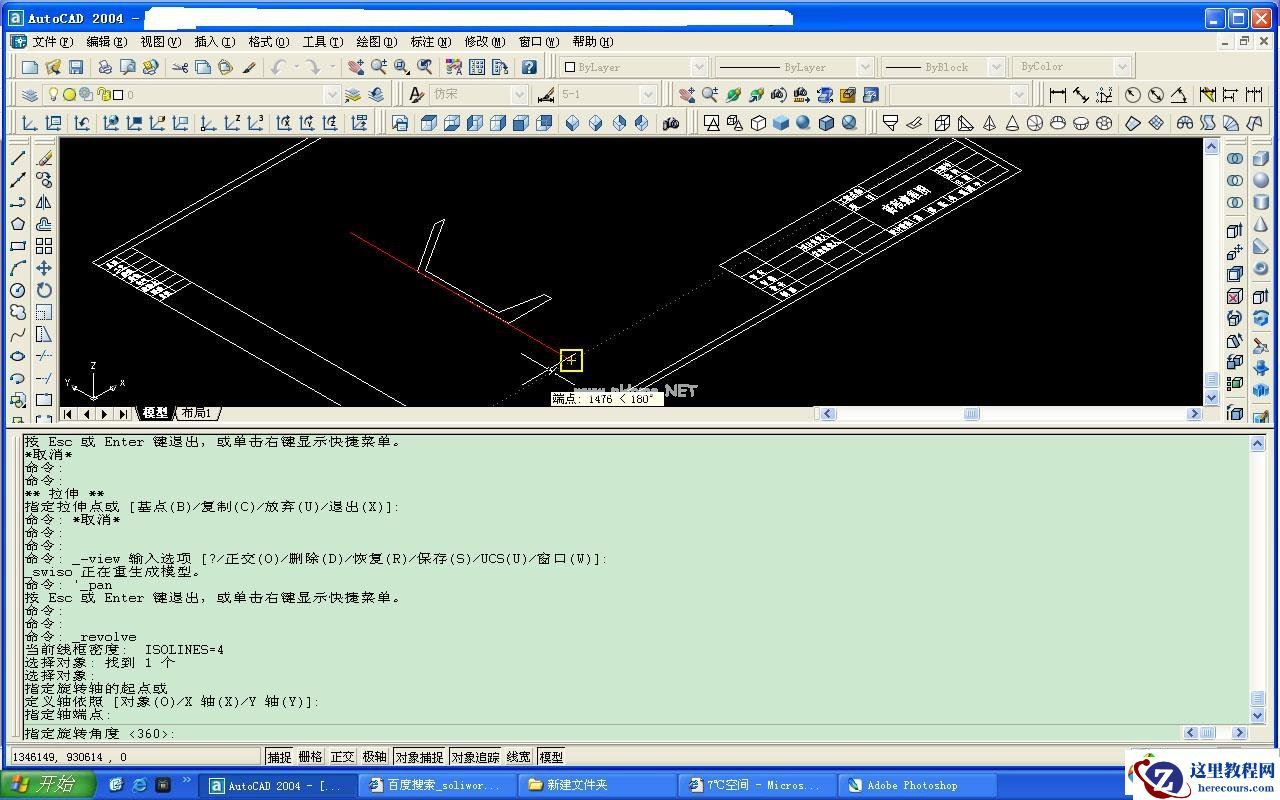 5.现在选择当初画的红色中性线,按回车, 此时提示是否要旋转360度,继续回车。如下图: