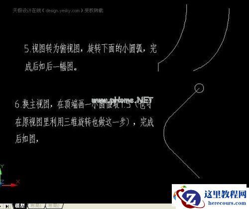 五、视图转为俯视图,旋转下面的小圆弧,完成后如后一幅图。