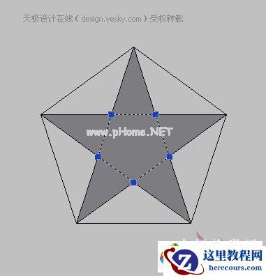 二、然后在五角星平面内侧以边的形式绘制五边形作为辅助图形。