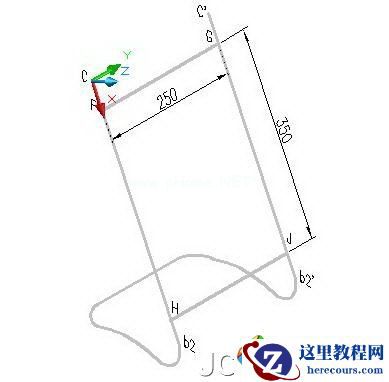 先设置视图。单击“视图”工具栏的“三点”按钮。单击点C指定坐标新原点,单击点b2指定X轴正向,单击点C’指定Y轴正向。
