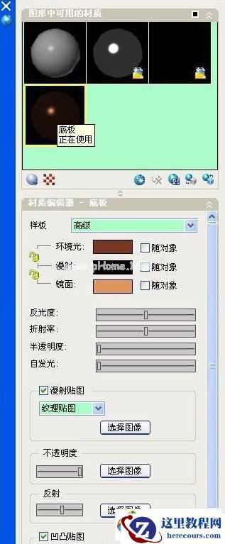 样板:选“高级金属”——具有更多选项的材质,包括可以用于创建特殊效果的特性(例如模拟反射)。