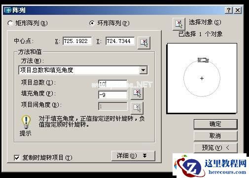用ARRAY命令,对直线进行陈列复制,陈列中心为点中心,陈列数为10,填充角度为-Array,复制旋转!