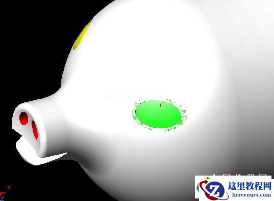 把猪身的图层关闭,把嘴巴拿出来,如图,白色那块就是,然后转换成面域,再画如图那条黄色圆弧,画直线也可以,圆弧往上色也可以,只是出来后猪的表情不同而已