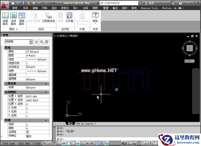 这种做法有点霸王硬上弓的味道,不过,AU论坛上的leizetao提醒我,这样做有一个好处:CAD之家http://www.cadzj.com/可以对图块添加一个可见性参数,这样需要对称时就可以对称阵列,不需要时就可单向阵列。这还真是一个非常好的主意。请看下图: