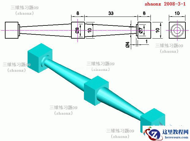 本例为AutoCAD三维建模系列教程,在本CAD三维建模教程中我们将学习在实体的面上作圆并拉升,旋转建实体的运用,二维命令“复制”、“镜像”的运用,希望能给对AutoCAD三维制作感兴趣的朋友带来帮助~~