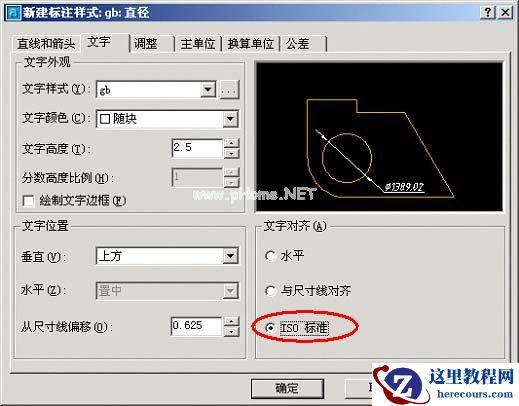 紧接8继续“新建”,在“用于”下选择“直径标注”,点击“继续”,为直径标注设置参数。先将文字对齐方式选为“ISO标准”,这样可以使直径尺寸成水平标注(这只是一种习惯)。
