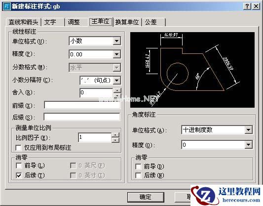 1,新建gb样式,在“直线和箭头”卡片上设置尺寸线、尺寸界线等参数如图。