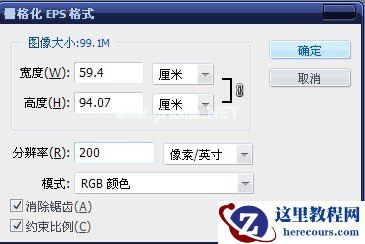 在PS中代开eps文件,此时会出现栅格化图像设置对话框,具体设置如下: