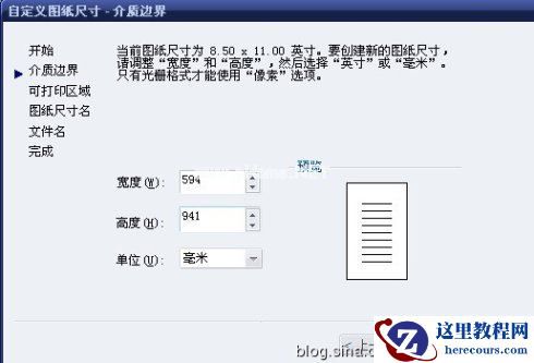 自定义图纸尺寸(无边框设置高度为841)