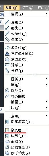 渐变色命令可以点击工具栏的命令,也可以点击绘图下拉有个渐变色,或者也可以输入H回车,点击右边的渐变色