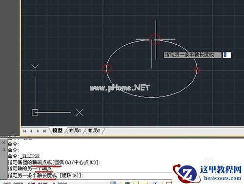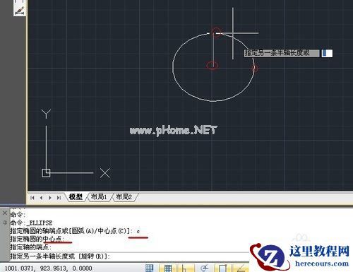 3 在点击椭圆命令后,输入栏出现:指定椭圆的轴端点或[圆弧(A)/中心点(C)]: