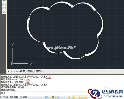 弧长:点击云线命令后,输入A回车,输入最小弧长值回车,输入最大弧长值回车,注意,最大弧长值不能超过三倍的最小弧长值。然后点击绘图区一点移动鼠标回到起点得到云线。