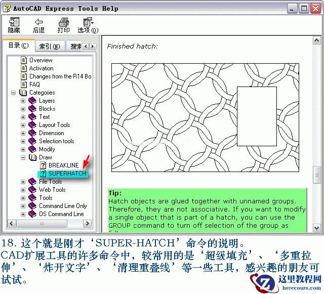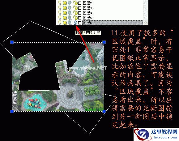 既然提到这个命令就再说说,“区域覆盖”它主要用于在比较复杂、密集的线条上显示说明文字信息,通常用得不多,用多了反而很麻烦。
