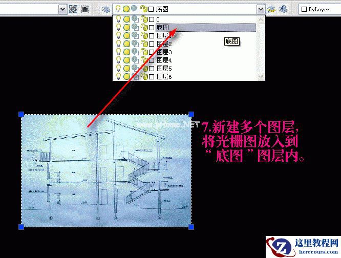 插入光栅图片作底图是很有意义的,以前也提到过。因为相当多的图纸设计,并非是前不见古人的,唯我独创的,很多人都是根据别人的劳动成果,修改移植而成的,比如从纸质蓝图上找到一个类似的图,想照抄下来进行修改,最简单的方法就是把图纸上用“扫描仪”给扫描成光栅图,没“扫描仪”也可用数码相机给拍摄成图片。