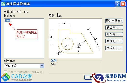 关于标注样式的设置,我建议只设一种,一是简单,只有一个标注样式,就基本上可以解决所有的标注情况,一劳永逸,二是不需要换算那讨厌人的比例,不容易出错。