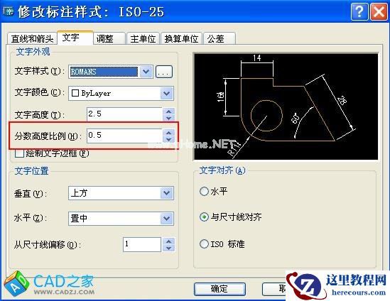 分数高度比例因子,即系统变量DIMTFAC