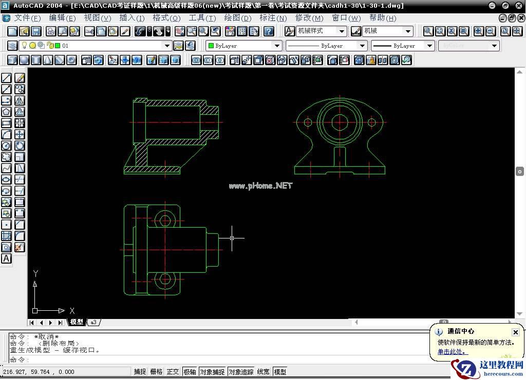 还想提示一下,若是考广东高级绘图员遇到这种题时,记得把这三个视图复制后粘贴到a3或a4(视图纸的大小而定)布局中,并把标题栏填好。