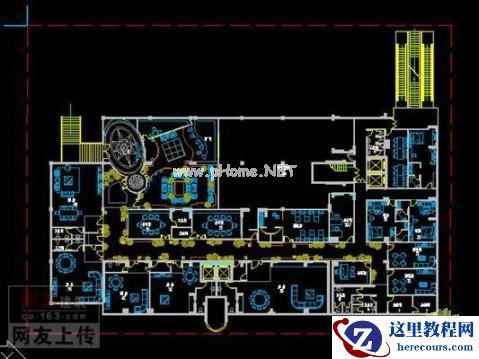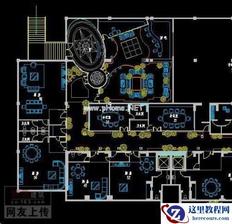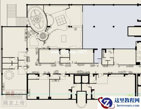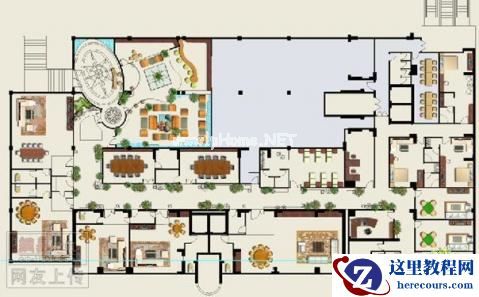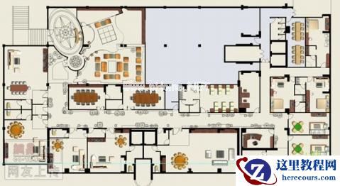 眼前是一个会所的平面图,我们去掉了尺寸的显示以及其他彩色平面图不用标注的东西
