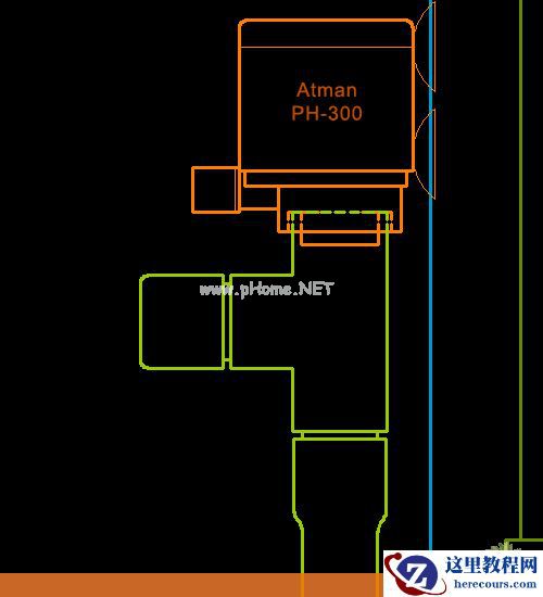 若原方案(A方案)失败,须改为常规底滤(B方案)。发现三通正好与创星PH-300进水口衔接紧密 :D ,将主缸出水总管截断,连一三通,三通侧口用小段四分管和堵头封住,上口可连PH-300水泵或四分管,A、B方案可以方便地更改。