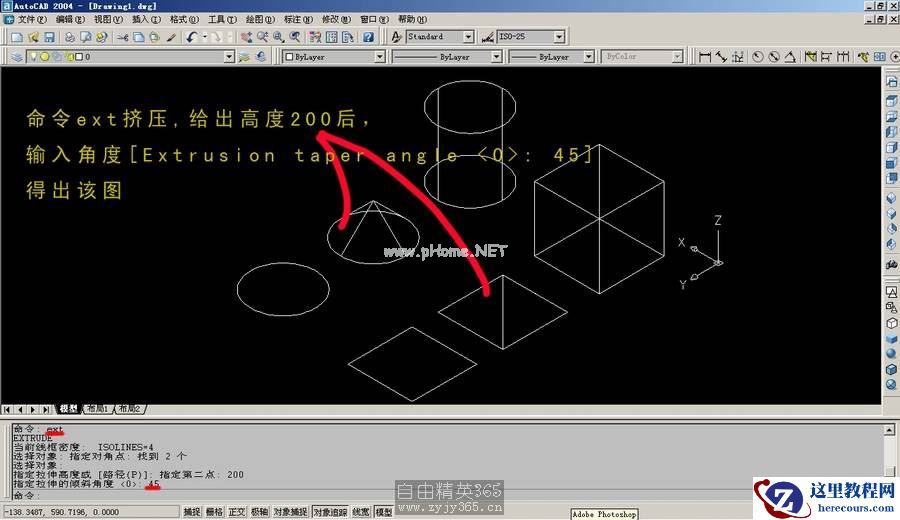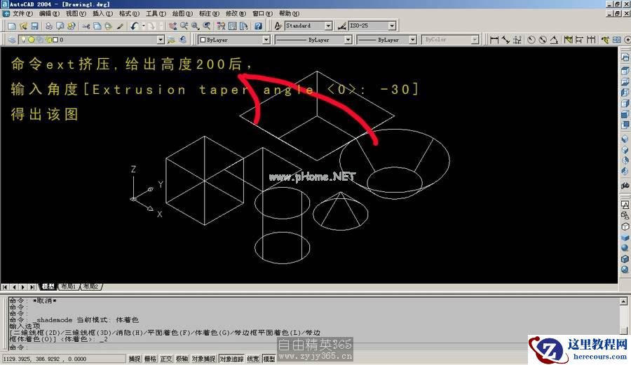 04 这个是ext挤压命令后,输入正角度后生成的模型(圆椎和棱锥)