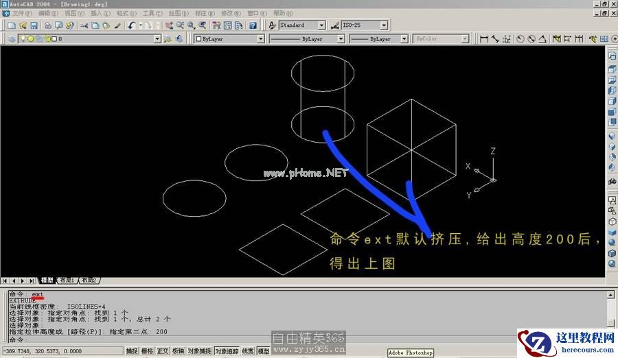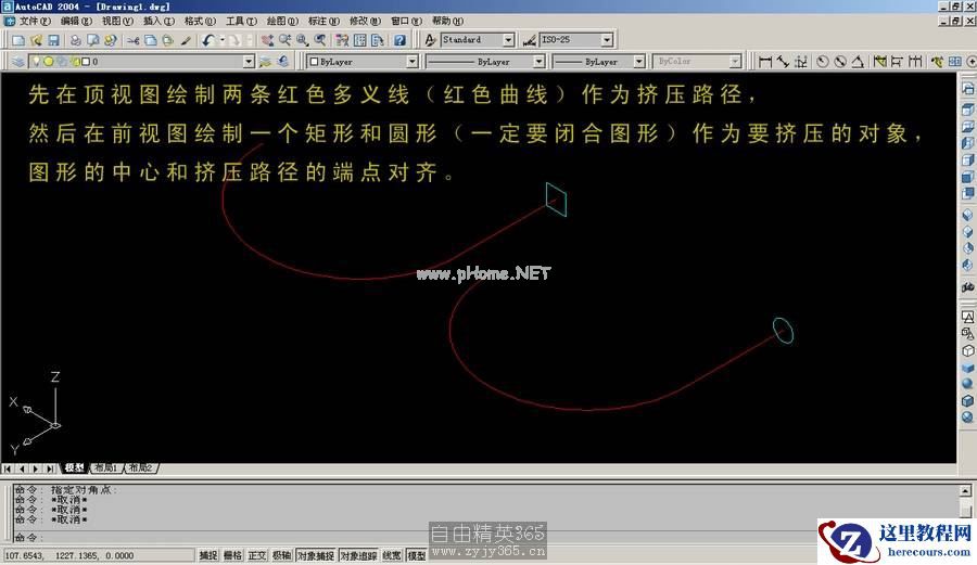 一、首先让我们学习cad实体建模的相关知识和命令: ext 闭合图形挤压命令 rev 闭合图形放样命令 3f 绘制单面物体(可用于ls中植物贴图载体) (一)ext 闭合图形挤压命令 01